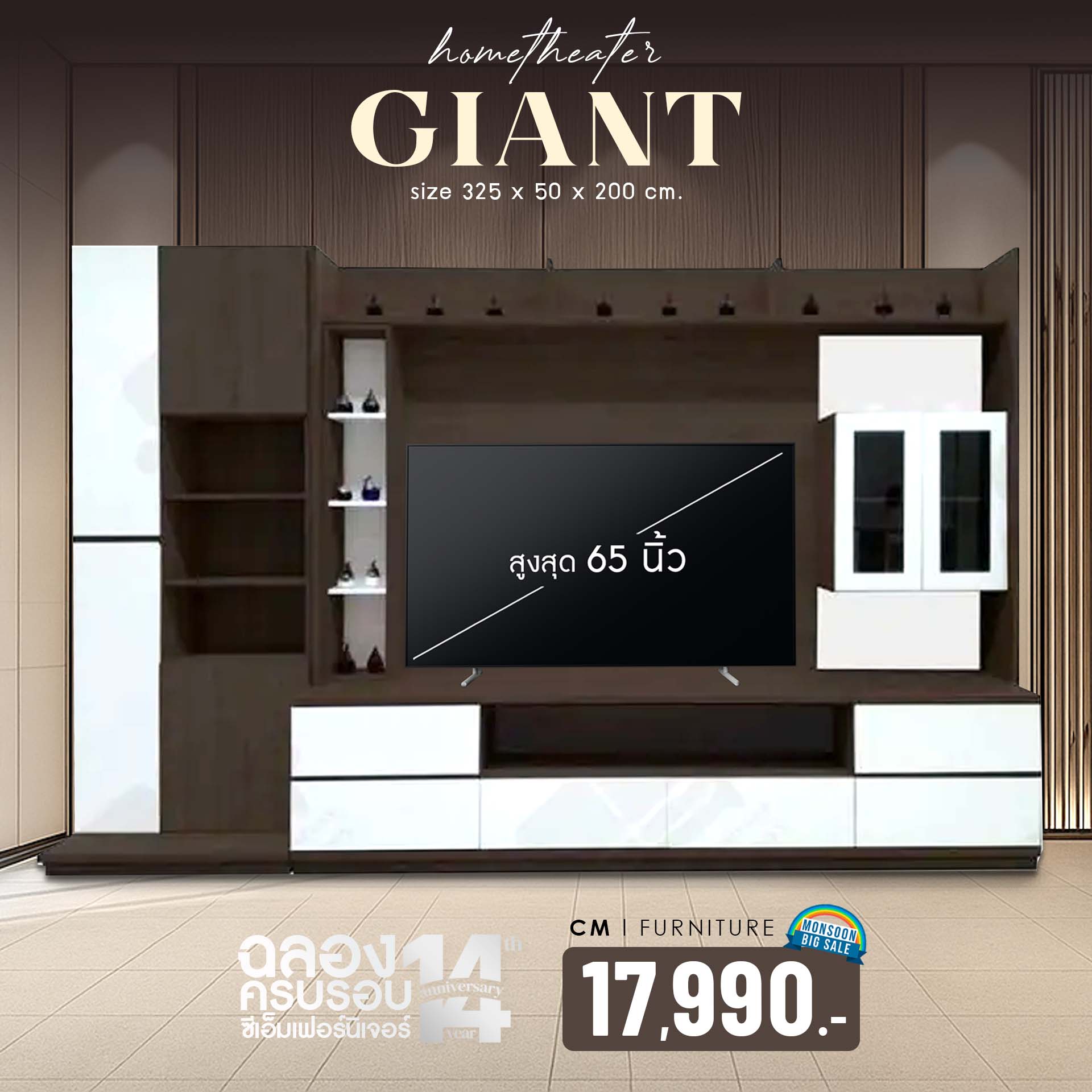 ชุดโฮมเทียเตอร์ รุ่น ไจแอนท์ขนาด 325 x 50 x 200 Cm.- วางทีวีได้สูงสุด 65 นิ้ว