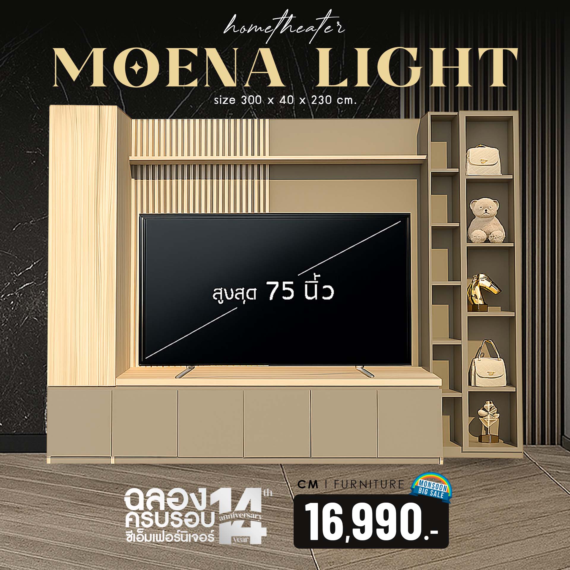 ชุดโฮมเธียเตอร์ รุ่น โมเอน่า (ไลท์)ขนาด : 300 x 40 x 230 ซม.