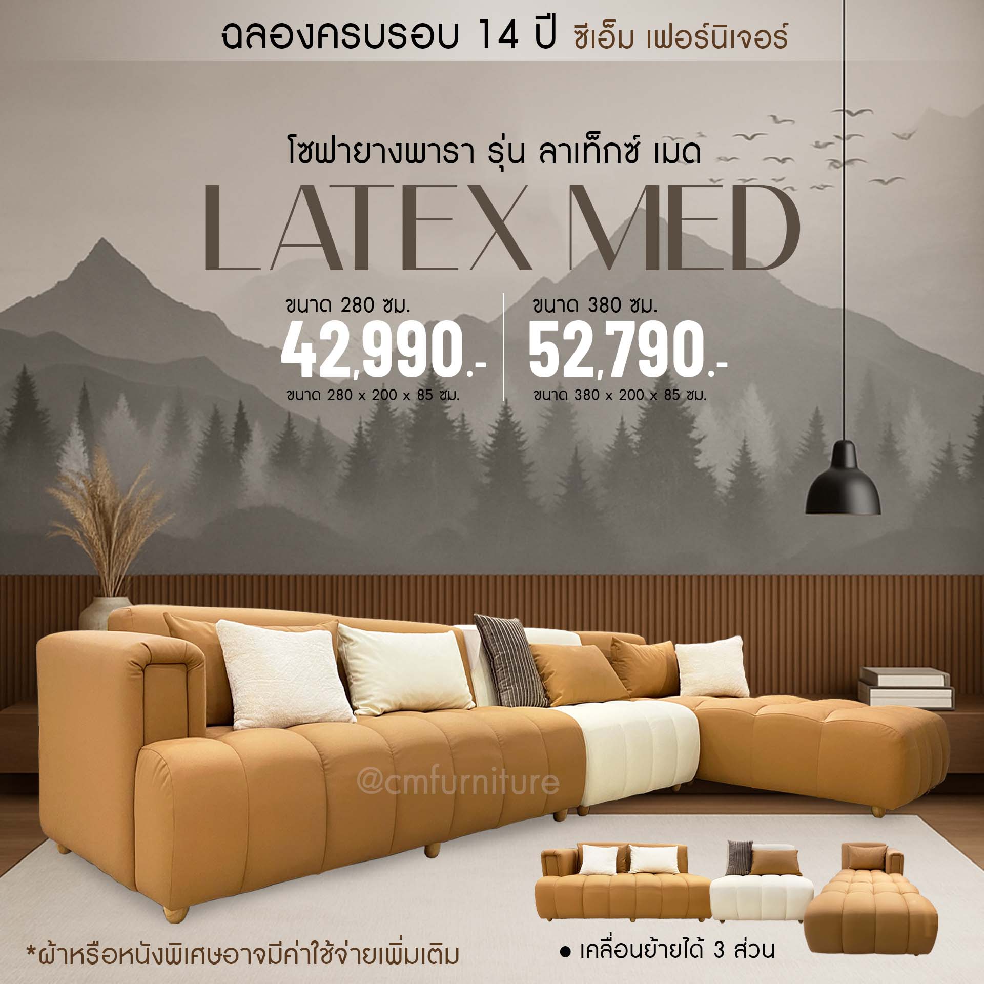 โซฟายางพารา รุ่น ลาเท็กซ์ เมด- เคลื่อนย้ายแยกได้ 3 ส่วนขนาด 280 ซม. / 42,990.-ขนาด 380 ซม. / 52,790.-